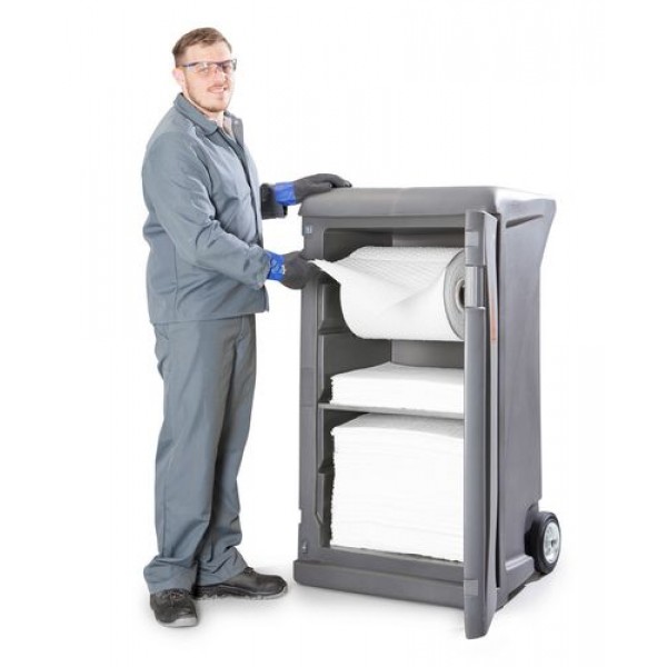 Densorb® Caddy, ki ga je enostavno premikati, je neprecenljiva pomoč, ko gre za hitro prenašanje vpojnega flisa na različna mesta uporabe,