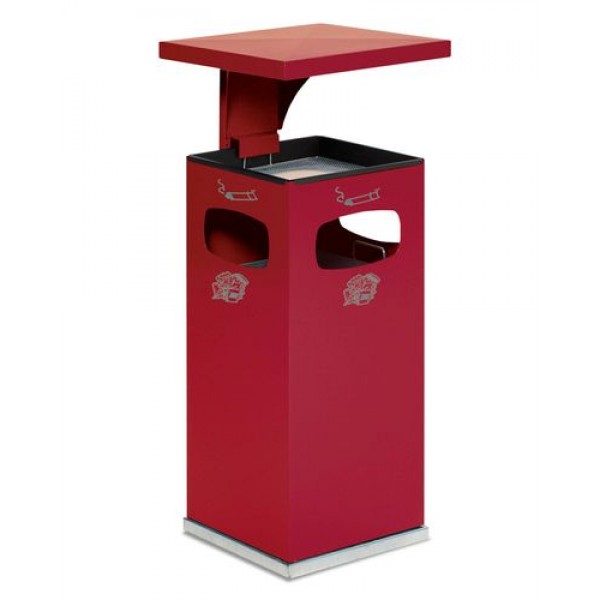 Koš s pepelnikom, iz jekla, 38 l, rdeč