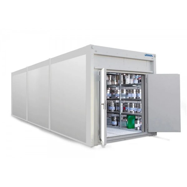 Dobavljeni kontejner služi kot protipožarno skladišče, ki je certificirano po REI90 in se lahko postavi kot samostojni požarni prostor sredi proizvodnje. Lovilna posoda je vgrajena v konstrukcijo in služi kot zaščita pred razlitjem tekočin. Vse komponente so skladne z ATEX in imajo zaščito pred eksplozijo. S tem protipožarnim kontejnerjem je podjetje pridobilo skladišče, ki je priročno, učinkovito in zagotavlja varnost zaposlenim ter podjetju.